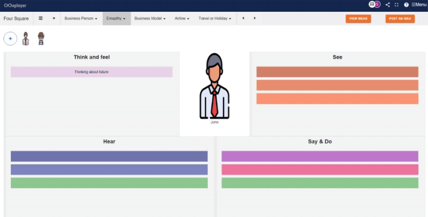 An empathy map and persona are linked to one another, so if you have created multiple personas, then this feature allows you to create an empathy map for each persona.