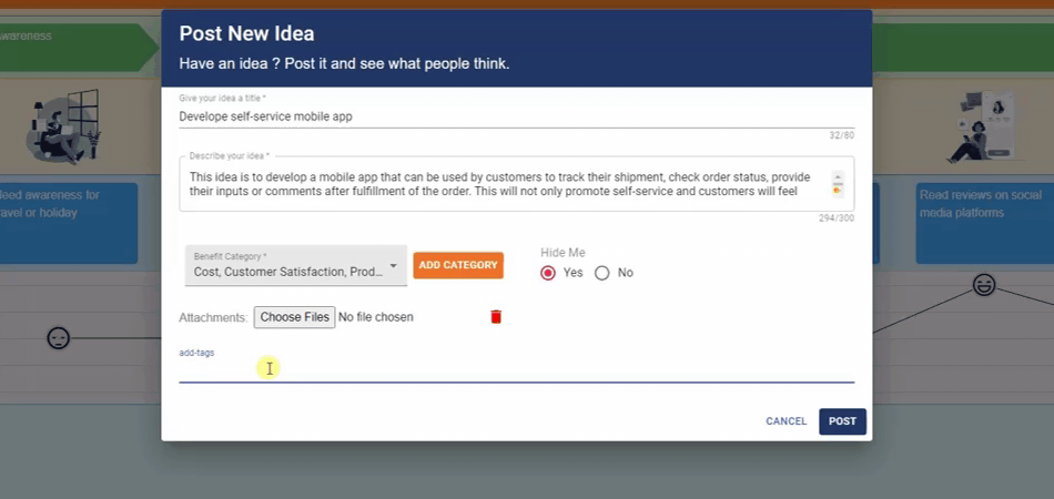 Want to submit an idea but don’t know how to explain it well? Add the attachment files and documents while submitting to support your idea.